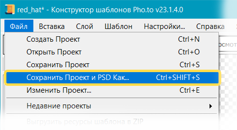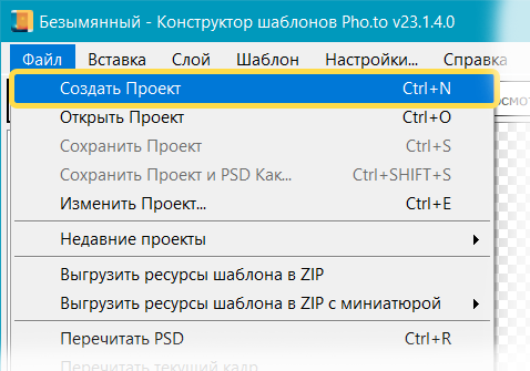 Проект шаблона состоит из файла проекта в формате .pttp2 и PSD-файла. Photoshop автоматически запускается при запуске Конструктора шаблонов. При создании проекта Конструктор шаблонов автоматически создаст в Photoshop PSD-файл с необходимой структурой слоев и привяжет его к проекту.