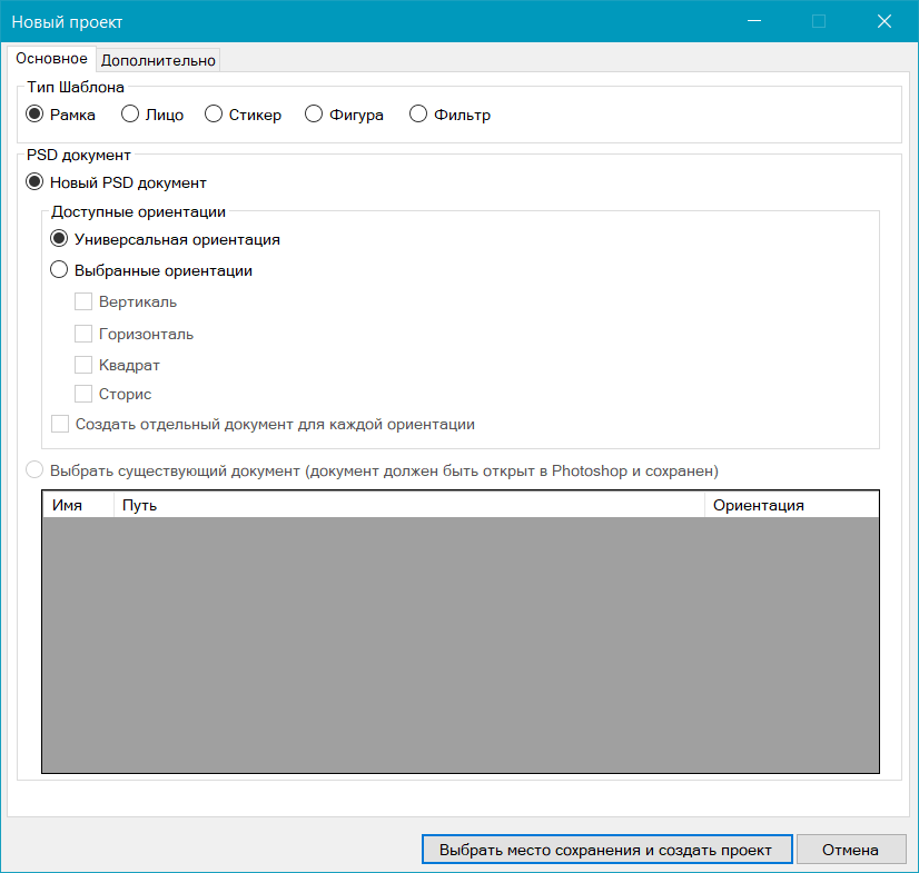 Чтобы выбрать PSD-документ из имеющихся, укажите для него необходимую ориентацию. Вы можете использовать несколько PSD-документов для одного шаблона, указав соответствующую ориентацию для каждого документа.