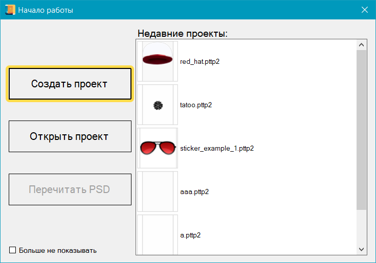 Привязанные к проекту PSD-файлы и прочие параметры можно изменить после создания проекта.
