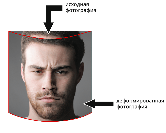 перетащите с зажатой клавишей смарт-фильтр от одного смарт-объекта к другому или на новое положение в списке смарт-фильтров. Для копирования в другой документ достаточно перетащить смарт-фильтр во вкладку целевого документа. Дополнительную информацию по работе со смарт-фильтрами можно узнатьПри деформировании области вписывания следует учитывать один важный момент. При обработке пользовательской фотографии шаблоном, деформированное изображение накладывается на недеформированное. В тех случаях, когда фотография не перекрывается другими графическими слоями по форме деформации, будут видны артефакты. Например, как показано на изображении ниже, часть исходной фотографии видна на финальном изображении: