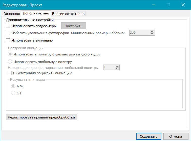 | Версия детектора | 2 | Детектор головы v2 лучше обрабатывает мелкие детали на краях головы, особенно в зоне волос. Подробнее о его использовании читайте здесь. |