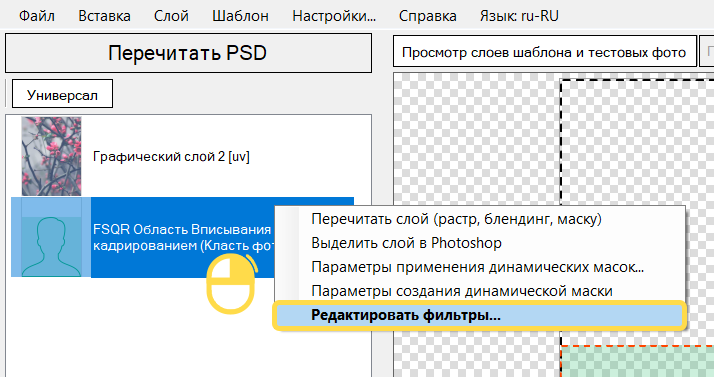 Для реализации этой задачи мы воспользуемся областью вписывания типа Фигура подтипа FSQR (с кадрированием оригинального фото).