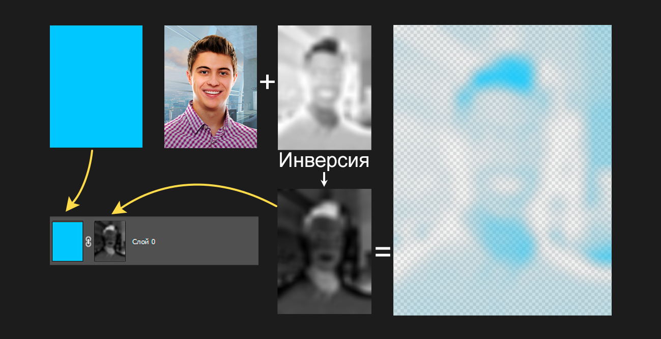 Как вы уже знаете, маска по пользовательской фотографии строится по преобразованной в градации серого исходной фотографии. Полученное изображение используется в качестве маски для слоя.