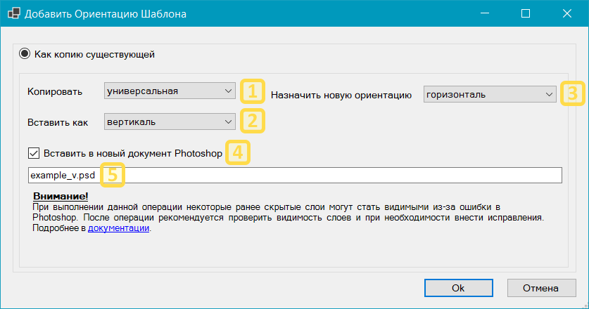 - : установите галочку для вставки новой ориентации в отдельный PSD-документ.